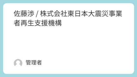 会員紹介 佐藤渉 / 株式会社東日本大震災事業者再生支援機構 受託不可 基本情報 氏名 佐藤 渉(さとう わたる)法人名称または屋号 株式会社東日本大震災事業者再生支援機構 住所 〒982-0222 宮城県仙台市太白区人来田3-16-5連絡先 kogupa◎mac.com ※◎を@に変えてご利用くださ... 2025.10.03 会員紹介