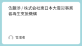 受託不可 基本情報 氏名 佐藤 渉(さとう わたる)法人名称または屋号 株式会社東日本大震災事業者再生支援機構 住所 〒982-0222 宮城県仙台市太白区人来田3-16-5連絡先 kogupa◎mac.com ※◎を@に変えてご利用くださ...