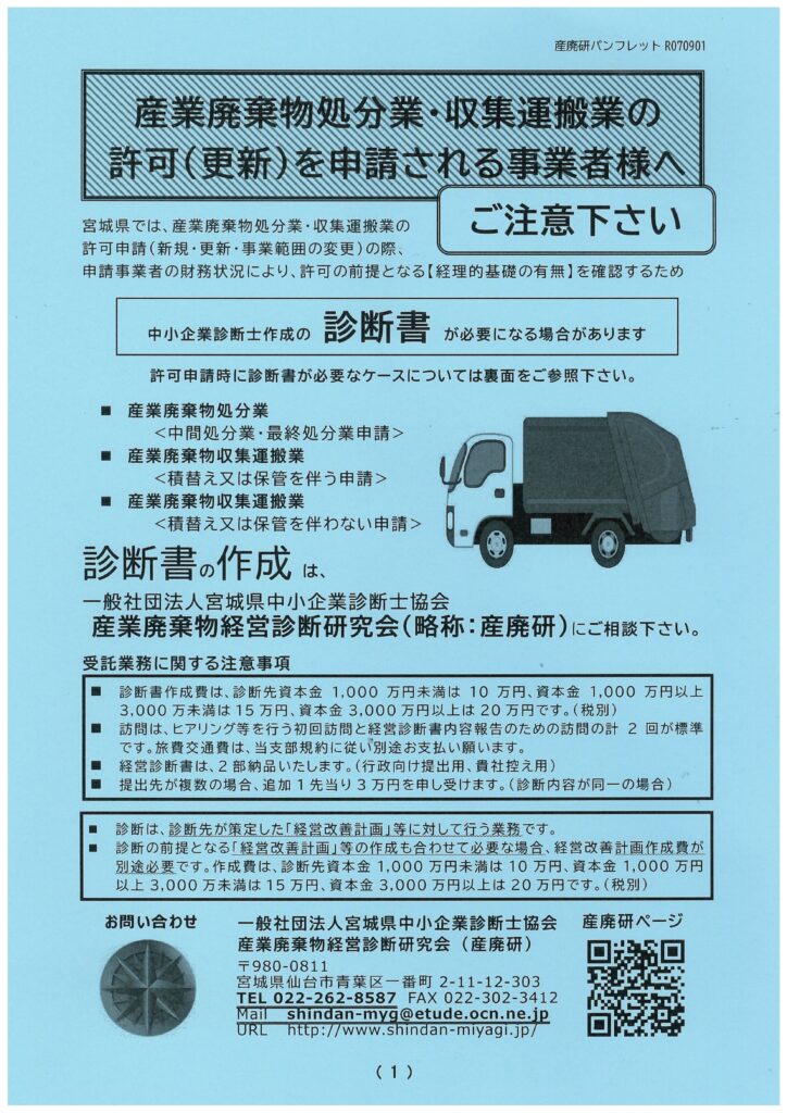 一般社団法人 宮城県中小企業診断士協会 産廃業経営診断研究会