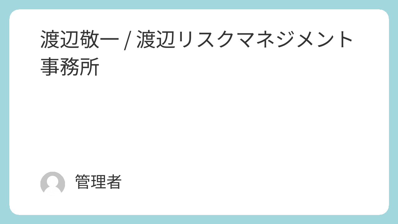 渡辺敬一 / 渡辺リスクマネジメント事務所 会員紹介 2025.10.03 受託不可 基本情報 氏名 渡辺 敬一(わたなべ けいいち) 法人名称または屋号 渡辺リスクマネジメント事務所 住所 〒980-0813 仙台市青葉区米ヶ袋2丁目3-24-304 連絡先 watanabe-rm◎docomonet.jp 電話 090-2275-7810